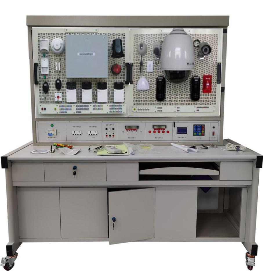TYK-ZNF02型 安全防范與小區(qū)管理實(shí)訓(xùn)裝置采用實(shí)訓(xùn)臺架和網(wǎng)孔板結(jié)構(gòu),桌面為高級防火防水板,耐磨高密度板,結(jié)構(gòu)堅固,配有常用電源控制柜,能對各系統(tǒng)進(jìn)行供電、接線、調(diào)試運(yùn)行和維護(hù)實(shí)訓(xùn)和考核;模擬實(shí)際工程環(huán)境,實(shí)現(xiàn)智能樓宇設(shè)備接線、系統(tǒng)調(diào)試、物業(yè)運(yùn)營維護(hù)等多方面實(shí)訓(xùn)要求。桌子下面用于放置工具、存放資料等,實(shí)訓(xùn)桌還設(shè)有四個萬向輪和四個固定調(diào)節(jié)機(jī)構(gòu),便于移運(yùn)和固定,有利于實(shí)訓(xùn)室布局。本系統(tǒng)控制電源部分全部采用實(shí)物,智能考核控制屏、控制臺輸出多種電壓電源、供實(shí)訓(xùn)模塊使用、電腦軟件系統(tǒng)等組成;系統(tǒng)設(shè)備將視頻監(jiān)控、樓宇對講及門禁、防盜報警和巡更系統(tǒng)作為活動模塊,根據(jù)課程的不同,將活動的模塊固定到實(shí)訓(xùn)臺上進(jìn)行實(shí)訓(xùn);系統(tǒng)不用時,可將模塊放入固定倉儲位置。