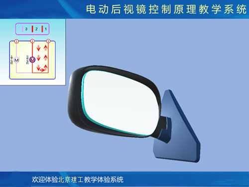 電動后視鏡虛擬仿真教學軟件是以實物與場景相結(jié)合研發(fā)的汽車教學軟件,該軟件充分展示了他的虛擬拆裝考核、虛擬拆裝實訓、理論考核等功能,適用于各類院校教學,電動后視鏡一般由鏡片、微型直流電動機、驅(qū)動器、控制開關(guān)等組成。在每個后一片的背后都有兩個可逆電動機,可操縱其上下及左右運動。